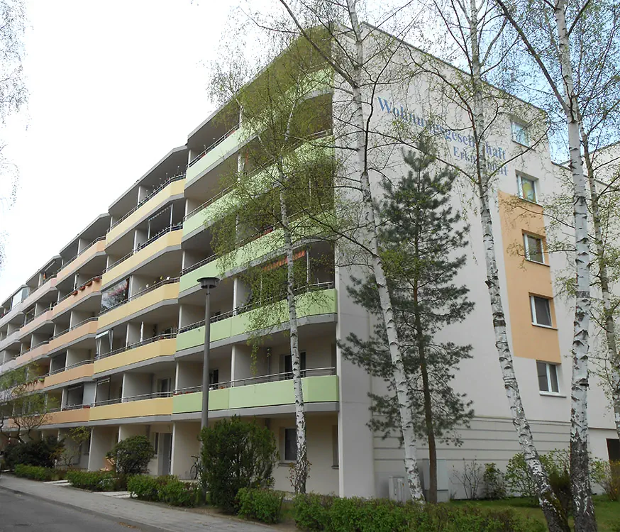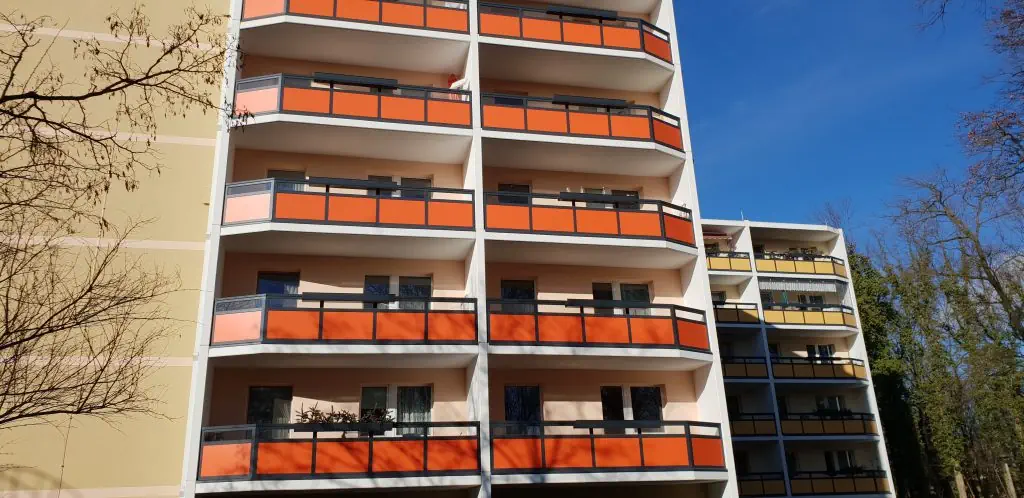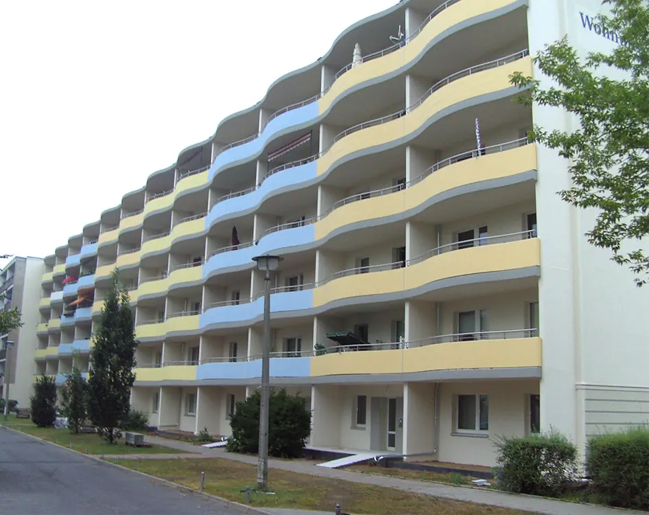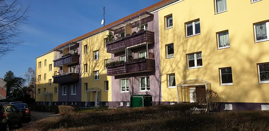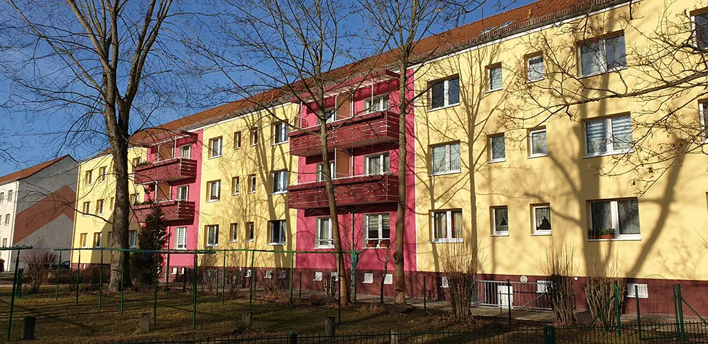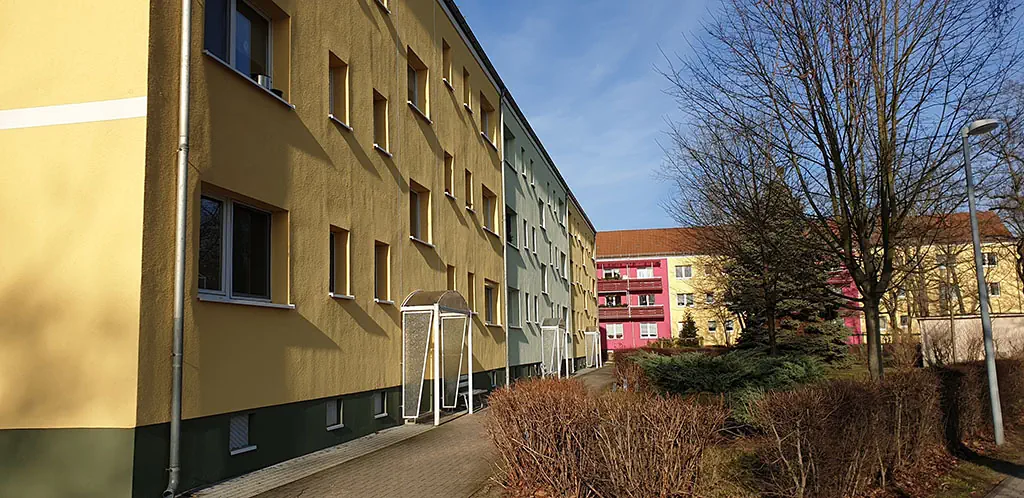 Die Objekte der Bahnhofsiedlung sind zum überwiegenden Teil 3-Geschosser, die in den 1950/60er Jahren erbaut worden.